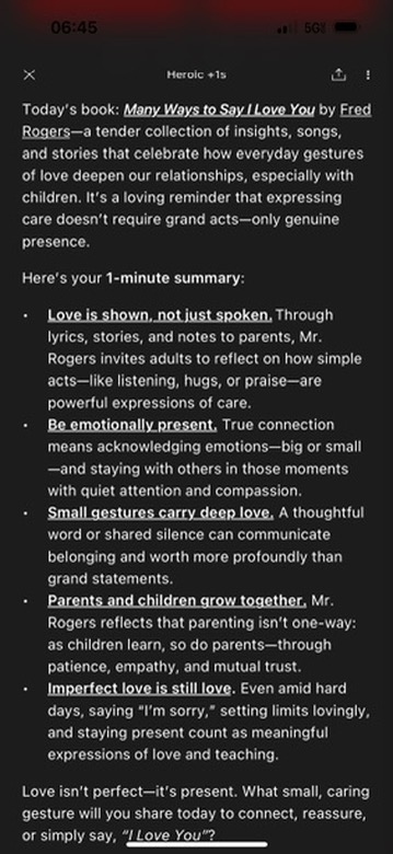 Below is a summary written by Brian Johnson, CEO of Heroic Benefit Corp, of Fred Roger’s book, “Many Ways to Say I Love You”.  See more info on Heroic at: https://bit.ly/4c0nDBS